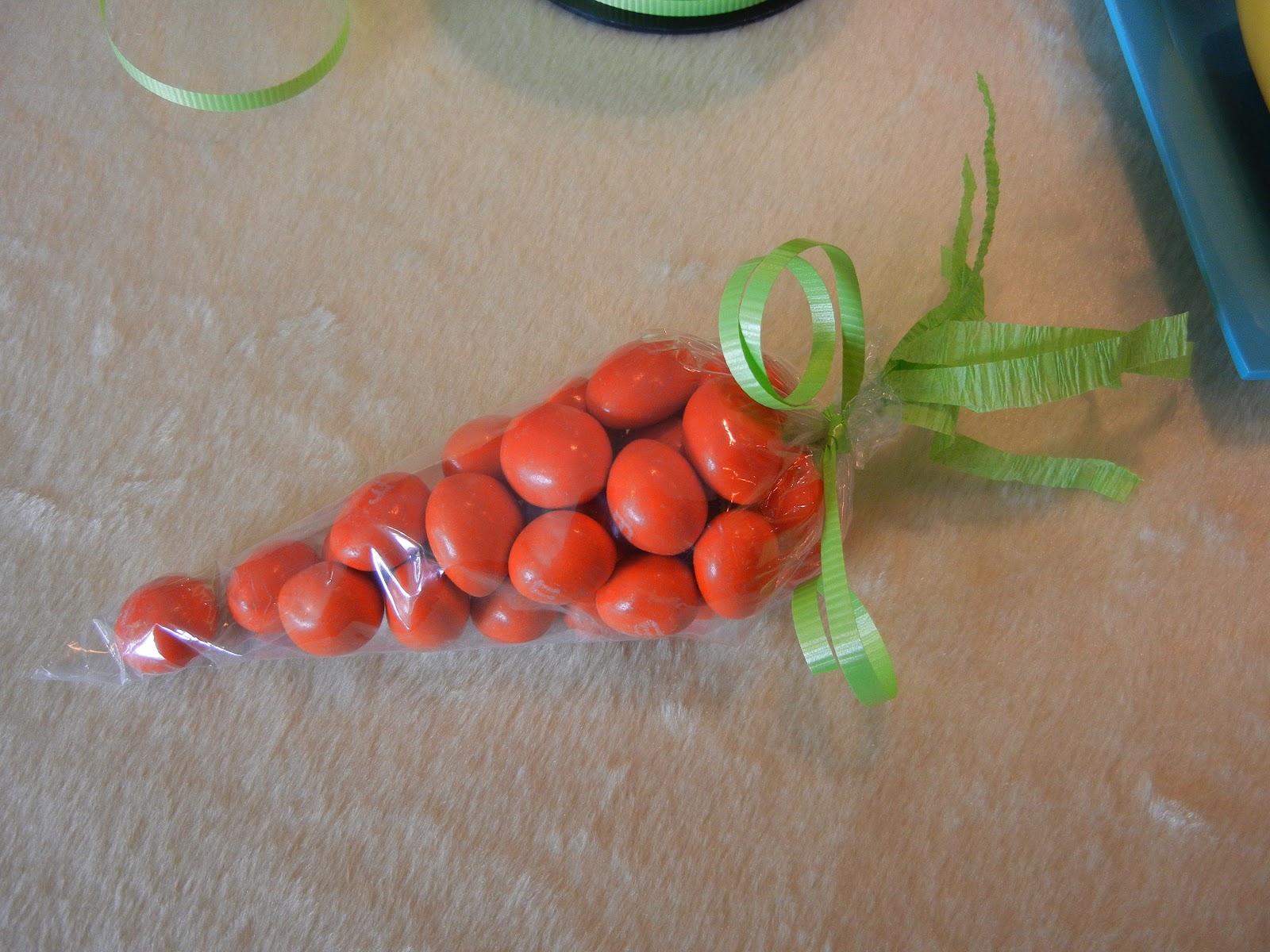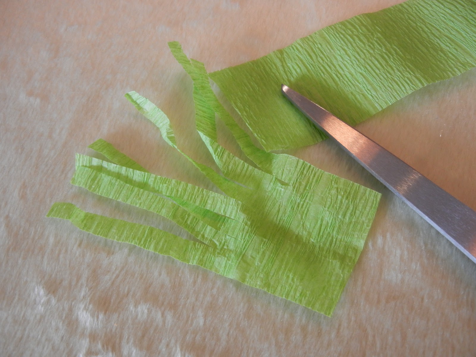 Trim a piece of streamer to desired length and fringe to make the carrot top