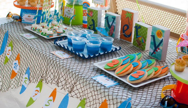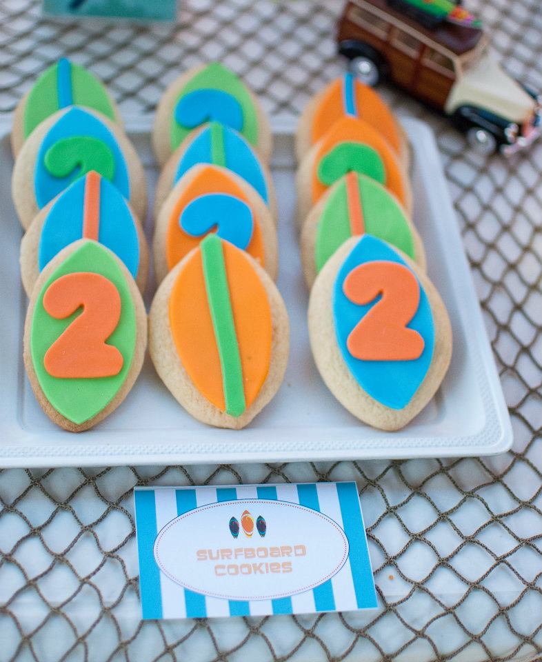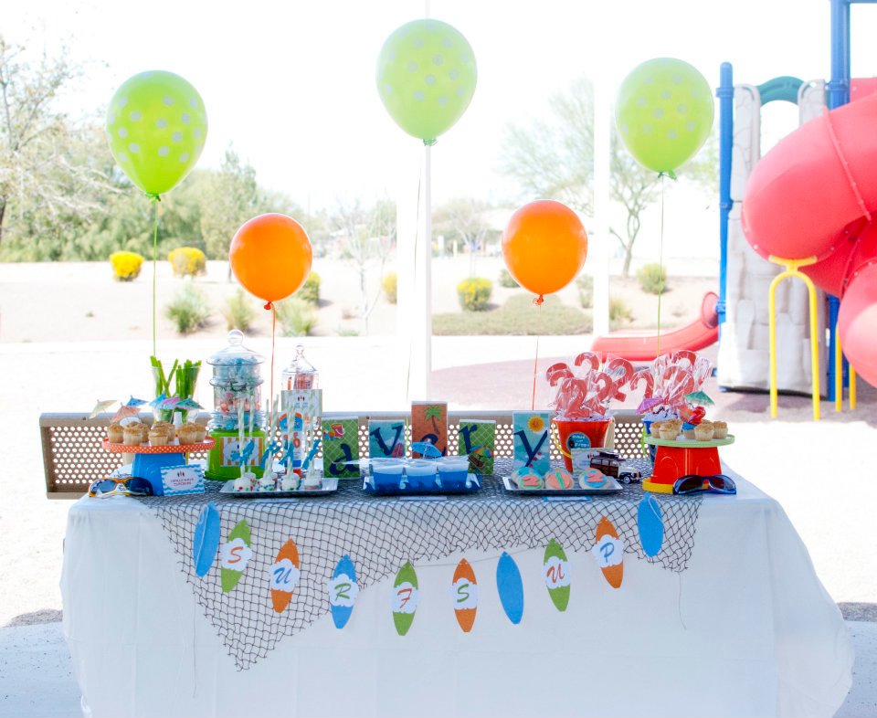 “With 2 boys I am always searching for fun, fresh party ideas. There seems to be a never ending supply of cute girls themes, but for some reason, boys always end up getting the short end of the stick in terms of ‘cuteness’. So when the idea to do a surfer boy theme hit me, it really hit me. I loved the idea of the bright colors, the surf boards and the fun slang phrases! I could not wait to start planning his surfer boy bash!