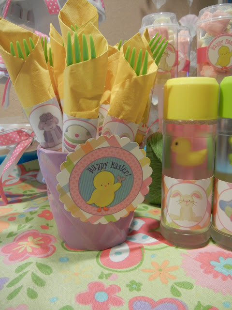 Last week I posted about using our Water Bottle Wrappers as Easter egg holders (see post here), today I’d like to share a couple more fun ways to use them at your next party. I used our Easter themed wrappers from our Easter collection just because I am getting ready for our Easter Brunch, but these tips aren’t limited to Easter. You can use any themed water bottle wrapper all year around.